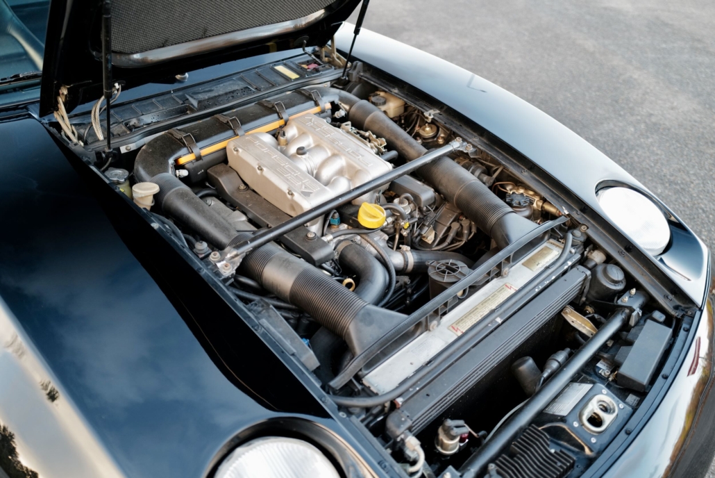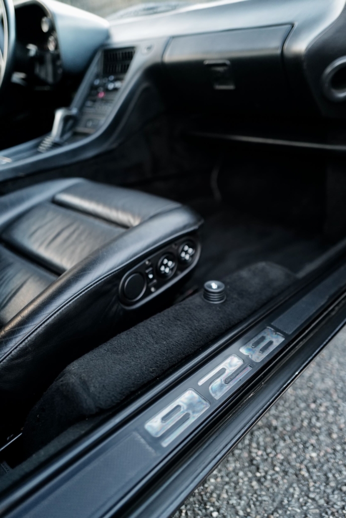 Mit diesem 1987er 928 S4 bietet sich die seltene Gelegenheit ein äußerst originales und gut durchgewartetes Exemplar dieses Frontmotorsportwagens mit V8 zu erwerben. Das Fahrzeug befindet sich in einer klassischen Farbkombination aus Schwarz/Schwarz und zudem noch vollständig im Erstlack. Die Historie ist durchgängig belegt und vor weniger als 5.000 km und 1 Jahr wurde erst im Porsche Zentrum der Zahnriemen und die Wasserpumpe erneuert. Spannend ist dieser 928 besonders für groß gewachsene Fahrer, da er über kein Schiebedach verfügt!